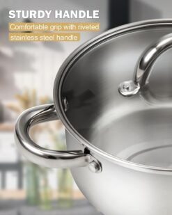 - EASY TO CLEAN & STACK & STORAGE – The inner and outer surfaces of the Stainless Steel Cooking pot are smooth and easy to clean, with a stackable design that maximizes storage space. It’s recommended to dry the water after cleaning and then store it.