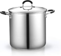 - 【Good Heat Distribution】Stainless steel Pasta Pot with an aluminum disc layered in the bottom for even heat distribution.