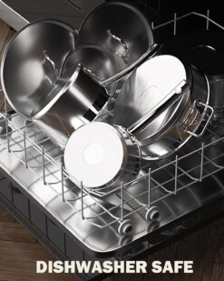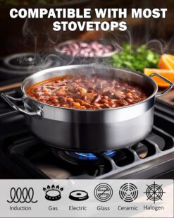 - Multi-Stove Compatible: The stainless steel pot works on induction, gas, electric, glass, ceramic, and halogen stovetops; It is oven safe up to 500°F and dishwasher safe