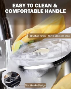 - Streamlined Handle Design: The slim handle design on the deep sauté pan reduces crevices where dirt can accumulate, making it easier to clean