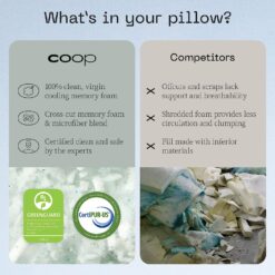 - IS YOUR PILLOW GREEN GUARD GOLD CERTIFIED? – Our Coop Home Goods Eden Pillows undergo strict, third-party lab testing and are CertiPUR-US and GREENGUARD Gold certified to ensure safety and quality. No harmful elements here! IT`S 100% SAFE FOR YOU AND YOUR LOVED ONES. Vegan & Cruelty Free – no animals were harmed in the making of this awesome pillow.