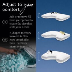 - You Sleep You: Be you with our adjustable pillow for side sleepers. Simply unzip the cover, add or remove stuffing to match your comfort level & get ready to sleep better! Personalize it the way you want it; each package comes with a 0.5 lb bag of fill. Cool+ also has 2 sides to choose from for a good night’s sleep; the cushy cool side & the firm, supercooled pad side.
