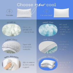 - Complete Cooling Technology: Inside, you get a gel-infused Oomph fill in plus shape for 50% more airflow. The memory foam & microfiber blend in this cooling pillow dissipates excess heat for a peaceful slumber, free from overheating & moisture. On the outside, you get a heat-wicking liner & soft cool-touch cover to keep you calm & chill.