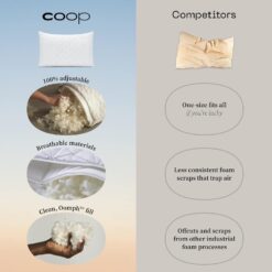 - FRESH NEW FOAM, EVERY SINGLE TIME: We’re committed to giving you the perfect sleep companion! That’s why each Coop pillow you get is made from freshly manufactured, never repurposed foam. Lay your head down to brand new foam with all our back & side sleeper pillows.