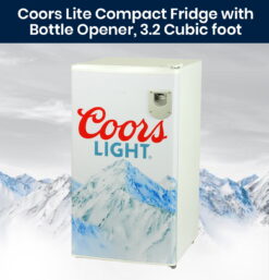 Coors Light Compact Fridge with Bottle Opener, 90 L/ 95 Quart 3.2 Cubic Foot for Snacks, Beverages, Juice, Beer, Den, Dorm, Office, Games Room, or RV