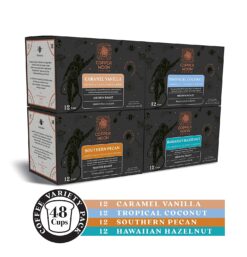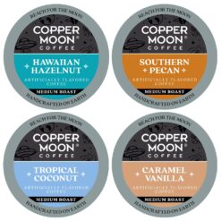Copper Moon Single Serve Coffee Pods for Keurig K Cup Brewers, Flavored Variety Pack, Medium Roast Coffee, 48 Count (12 each: Caramel Vanilla, Tropical Coconut, Hawaiian Hazelnut, Southern Pecan)