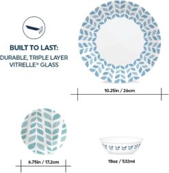 Corelle Global Collection Vitrelle 18-Piece Dinnerware Set, Triple Layer Recycled Glass, Lightweight Eco-Friendly Round Plates and Bowls Set, Northern Pines