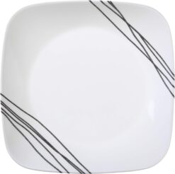 The Corelle 18-Piece Square Dinnerware set has everything you need to go from everyday meals to special occasions and has service for 6. Offered in classic white to modern, stylish designs, try layering it with colors and patterns from your other favorite pieces. It lets food take center stage and gives you a canvas for seasonal touches. Set includes matching serving bowls.