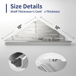Corner Shower Shelf 10″ Polished 304 Stainless Steel Recessed Corner Shelves with Slot Design Bathroom Shelf Racks for Tiled Wall, No Drilling Needed, 2 Pack