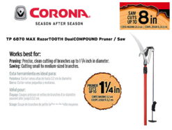 Featuring a lightweight fiberglass pole with a no-slip foam grip for comfortable and secure handling, the Corona TP6870 Professional Tree Pruner With Fiberglass Handle makes it easy to reach high into trees for convenient pruning. A heavy-duty design makes it ideal for orchards and frequent use, with a durable rope-pull system and high-carbon razor-tooth steel blade. The extendable pole promises versatile convenience to complete the design.