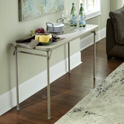 A perfect addition to your home or living space, the COSCO 20” x 48” Vinyl Top Folding Table is a sleek and versatile necessity for your next get together. Designed for indoor and light outdoor use, this table helps to maximize your space for game night, parties, and celebrations! This 20”x48” table also serves as an ideal spot for crafting and working on projects or homework. Comes in a modernized and practical black color that matches any home décor. Includes a vinyl tabletop, making this table low maintenance and easy to clean using a damp cloth. Features non-marring leg tips to help protect any floor surface from scratches or damage. When the party is over or project is complete, this lightweight table folds flat for storage and transport. Manufactured with a durable, powder coated all-steel frame, this table ensures long lasting use and features a 100 lb. distributed weight capacity rating. Comes standard with a 1-year, limited warranty.