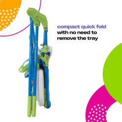 - Specially designed for travel, this high chair folds down quickly and easily for meals on the go