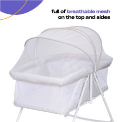 The Cosco Sleep Spot Bassinet is the perfect naptime travel buddy. Its breathable mesh canopy provides extra protection outdoors for your little one, and it gives you a chance to easily look in and see your baby sleeping soundly. On cool, cloudy days, when the canopy isn’t necessary, it can quickly be removed. If your child is having trouble drifting off to sleep, the little kickstands turn in on each corner, so you can gently rock your baby to sleep. Then the kickstands extend out again to firmly place the bassinet in stationary mode. It also folds quickly and easily for those times when you’re on the go. This product is designed with a firm, flat sleeping surface that meets the Consumer Product Safety Commission’s recommendations for safe sleep.