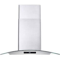 Elevate your kitchen decor to new heights. Cosmo’s COS-668AS750 wall mount range hood kitchen hood features a stainless steel body with a tempered glass visor. Heavy duty stainless steel permanent filters are dishwasher safe for easy clean-up. 380 cu. ft. per minute suction traps smoke and fumes from disturbing your home. Its glass visor captures smoke and steam, ensuring it doesn’t escape into your home. LED lighting is available for added visibility. Touch controls make using our wall mount range hood easy.