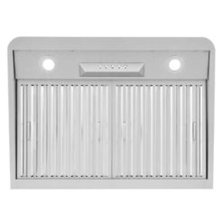 - 30 inch under cabinet range hood has sleek stainless steel push button controls operate the fan and lights and integrate seamlessly with the range hood design