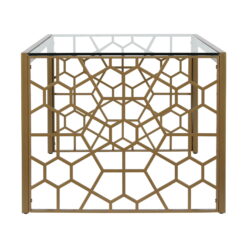 - Glass top coffee table with artistic cut out detailing.
