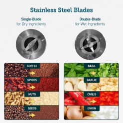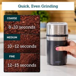 - Quick & Powerful: The stainless steel blade and 200W of power grind coffee beans to coarse in 5 seconds, medium in 10 seconds, and fine in 15 seconds