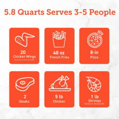 - Capacity: 5.8 QT / 5.5L. Serve 3-5 people