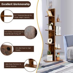 Costway Brown Open Concept Bookcase Plant Display Shelf Rack Storage Holder Wood
