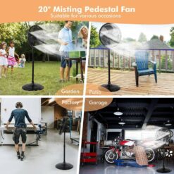 - Perfect for Various Occasions: This 20” misting pedestal fan is designed specifically for outdoor activities, including backyard barbecues, patio gatherings, pool parties, etc. With the refreshing wind and cooling mist, you, your family and your guests will keep cool and comfortable during the hot and sticky summer times.