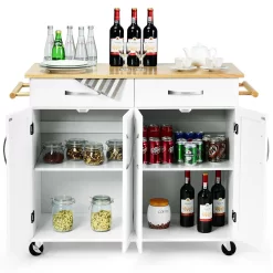 Costway Kitchen Trolley Island Utility Cart Wood Top Rolling Storage Cabinet Drawers White