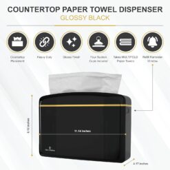 Countertop Multifold Hand Paper Towel Dispenser by Oasis Creations, Single Sheet Dispensing – Glossy Black
