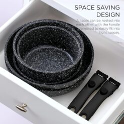 - Optimal Storage: With our stackable cookware set with detachable handle, you can finally declutter your kitchen cabinets while still having all the cookware you need.