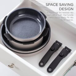 - Optimal Storage: With our stackable cookware set with detachable handle, you can finally declutter your kitchen cabinets while still having all the cookware you need.