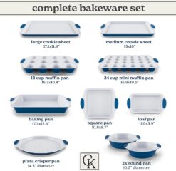 Country Kitchen Nonstick Stackable Bakeware Set – Durable, Easy Release Baking Set, Navy, 10 Pcs