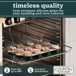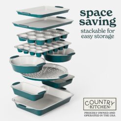 Country Kitchen Nonstick Stackable Bakeware Set – Durable, Easy Release Baking Set, Sage, 10 Pcs
