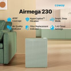 Coway Airmega 230 True HEPA Air Purifier with Air Quality Monitoring, Auto, and Filter Indicator, Sage Green