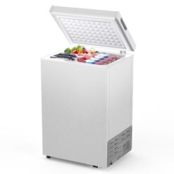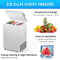 With this chest freezer, it is a perfect extra space for anywhere you want to store ice, frozen foods, and breast milk with low noise. Extra room for your frozen foods looks sleek and takes up minimal space in your home or office. Whether you are preparing food for your house, garage, basement, apartment, kitchen, cabin, lake house, or timeshare, this chest freezer can meet your frozen food needs. The removable storage basket, easy-access defrost drain, easy-clean indoors, gasket, and recessed handle empower use effortlessly. The color blends easily into nearly any non-public or professional environment. The 2.8 cu.ft. chest freezer is additionally incredibly energy efficient, with an estimated power consumption of just 0.7 kWh per day.