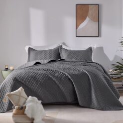 CozyLux Summer Quilt Sets Twin Size Dark Grey 2 Pieces – Lightweight Soft Bedspread – Lantern Ogee Pattern Coverlet Bedding Set for All Season – 1 Quilt and 1 Pillow Sham – Dark Gray, 68″x86″