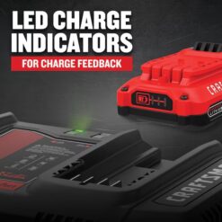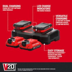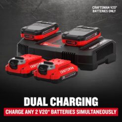 - Dual Charging – Charge any 2 CRAFTSMAN® V20* batteries at the same time