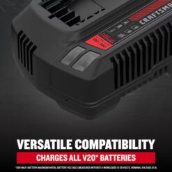 - VERSATILE COMPATIBILITY: Charger is compatible with all CRAFTSMAN V20 power tool and outdoor tool batteries