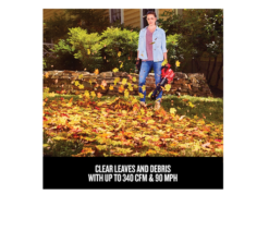 - QUICK CLEAN UPS: Clear leaves and debris on hard surfaces with up to 340 CFM and 90 MPH
