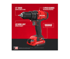 CRAFTSMAN CMCD700C1 V20, 1/2-in Cordless Drill/Driver (1 Battery) is ready for your drilling and fastening needs featuring a high performance motor providing you the power needed to help complete a variety of applications.