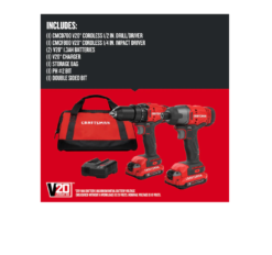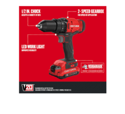 CRAFTSMAN CMCK200C2 V20 Cordless 2 Tool Combo Kit (2 Batteries) provides a solution for all of your drilling and fastening needs.