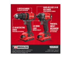 CRAFTSMAN CMCK210C2 V20 Cordless Brushless Compact 2-Tool Combo Kit (2 Batteries) provides a solution for all of your drilling and fastening needs.