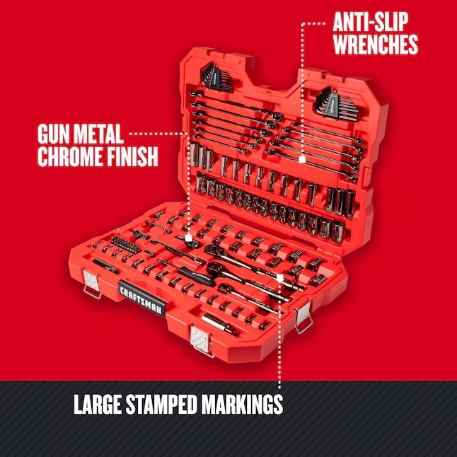 CRAFTSMAN CMMT12033 121-Piece Standard (SAE) and Metric Combination Gunmetal Chrome Mechanics Tool Set with Hard Case
