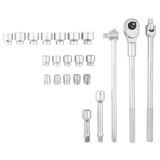 Build out your mechanics tool kit with this 22 pc. 3/4 in. Master Drive Set. This set includes 1 Quick Release Ratchet, 17 Shallow Hand Sockets, 2 Extension Bars, and 1 Sliding T-Handle. Backed by a Lifetime Warranty, these tools deliver the quality and durability you’ve come to expect from the CRAFTSMAN® brand.