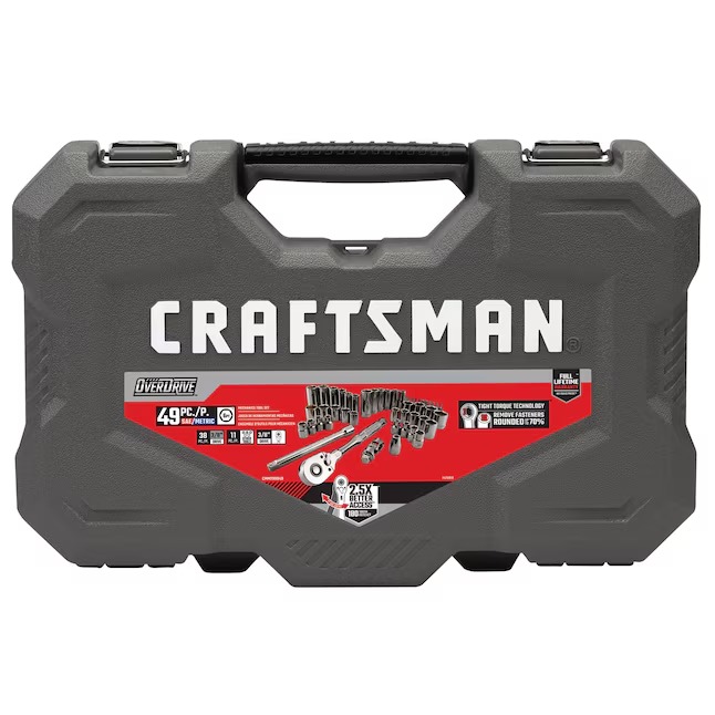 CRAFTSMAN CMMT99049L OVERDRIVE 49-Piece Standard (SAE) and Metric Gunmetal Chrome Mechanics Tool Set with Hard Case