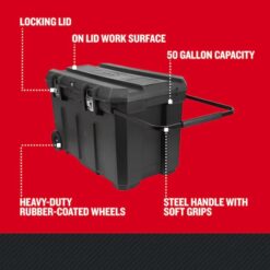 With a 50-gal capacity, the CRAFTSMAN® 37-in 50 gal wheeled lockable tool box has a variety of storage applications for professional or home use. This lockable roller tool chest is made of high density structural foam and has a soft grip handle and rubber coated wheels that allow for easy maneuverability.