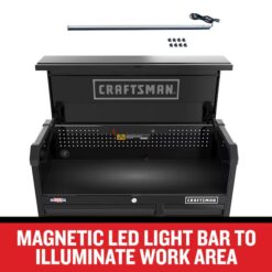- This chest includes a magnetic LED light to better illuminate your workspace and a power strip to keep all your CRAFTSMAN® power tools charged and ready to use