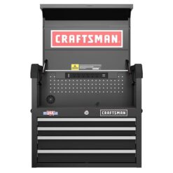 Your multi-utility storage and charging solution, this S2000 26-in 4-Drawer Tool Chest is optimally suited for stowing tools while keeping your batteries and electronics powered up. The chest packs the capacity to store several tools while not taking up much space in your garage or workshop. Easily access the integrated power strip to maintain high productivity throughout the day while the no-slam drawer slides help keep your tools secure and in place.