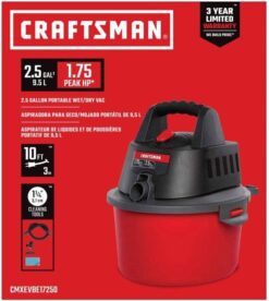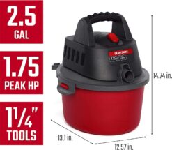 CRAFTSMAN CMXEVBE17250 2.5 Gallon 1.75 Peak HP Wet/Dry Vac, Portable Shop Vacuum with Attachments, Red, Black