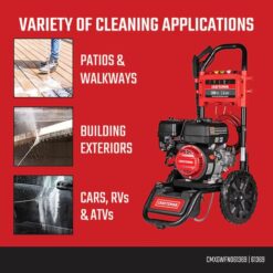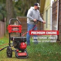 Clean big with the Craftsman®! This fully assembled compact gas pressure washer is lightweight, easy to store, and provides a powerful pressure washing experience. Just set up and you are ready to clean. The Craftsman features a Craftsman engine paired with an OEM Technologies™ axial cam pump. The fully assembled pressure washer steel frame is powder-coated for corrosion resistance. This compact gas pressure washer will allow easy access into hard to clean areas.