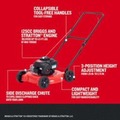 - Reliable performance – Complete lawn maintenance with a 125cc Briggs and StrattonĀ® engine that delivers up to 4.5-ft lbs of max torque for reliable performance all season long.