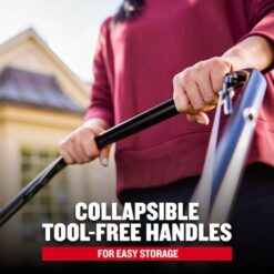 - Easy storage – Conveniently fold the tool-free handle down to help maximize storage space when mower is not in use