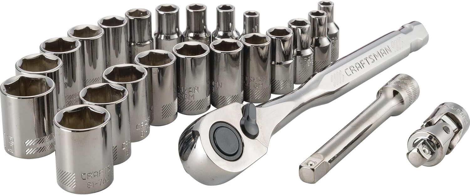 CRAFTSMAN Mechanics Tool Set, 1/4″ Drive, SAE/Metric, 24 Piece (CMMT12028)